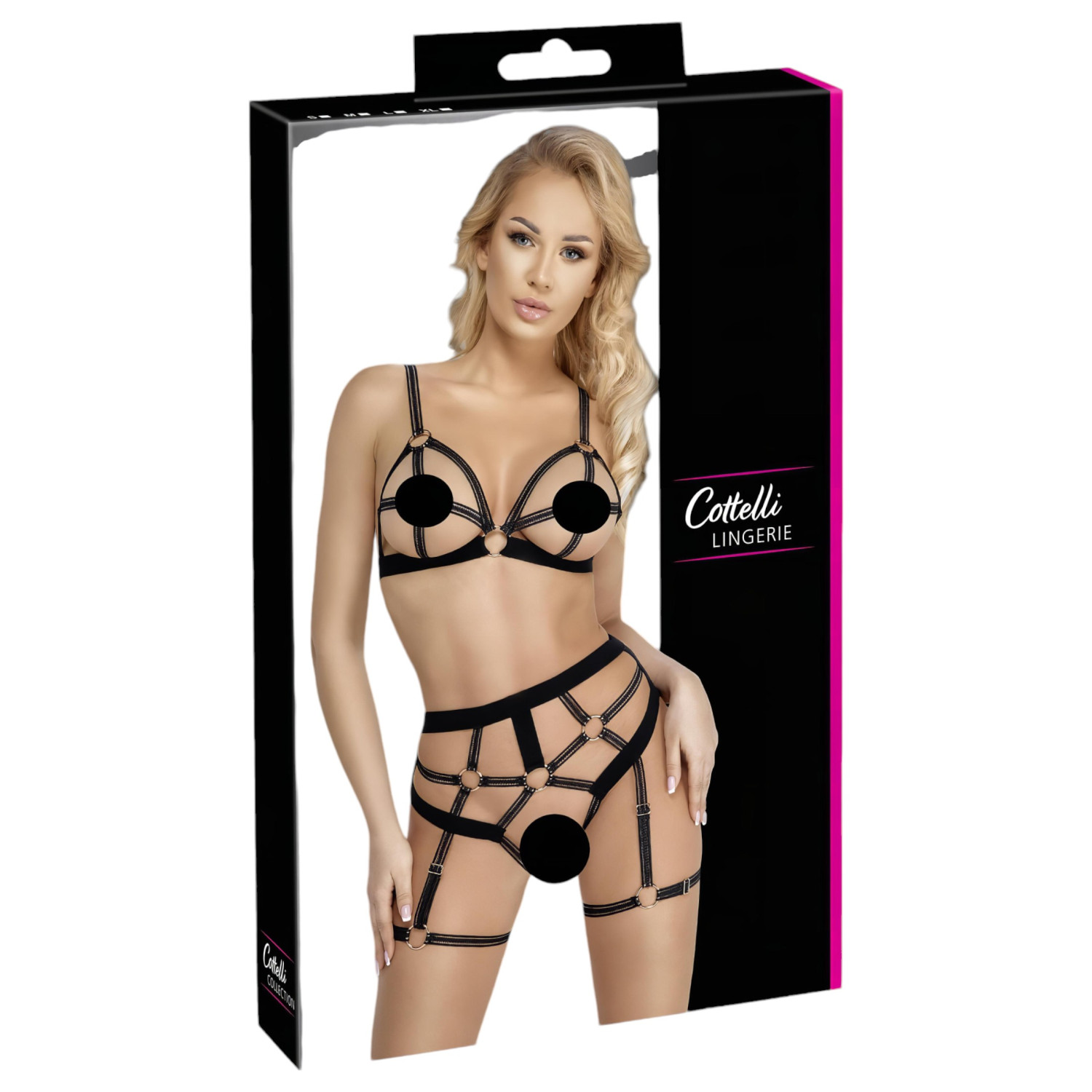 Cottelli - dwuczęściowy komplet uprzęży (czarny) - L