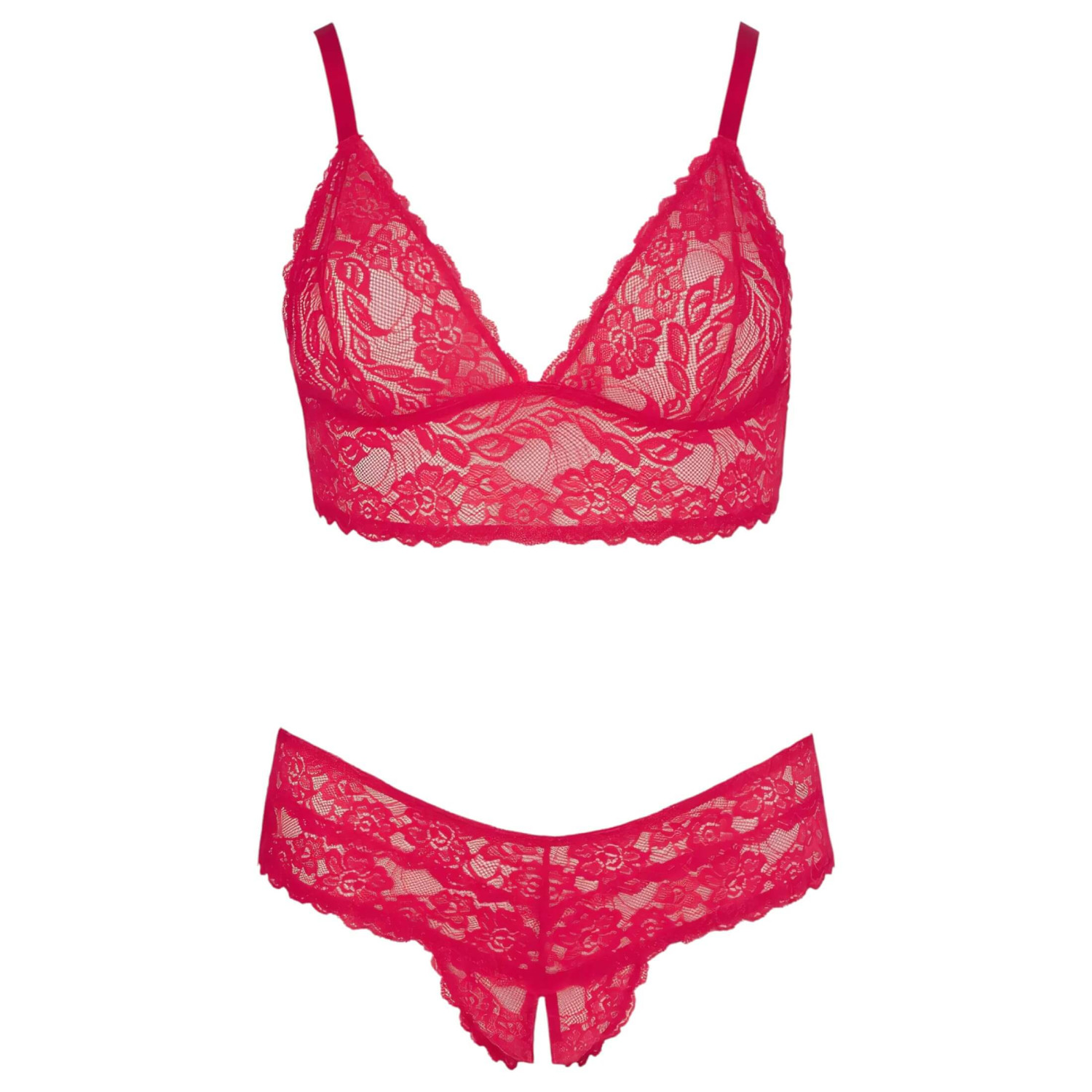 Cottelli Plus Size - miękki koronkowy zestaw biustonoszy (czerwony) - 2XL