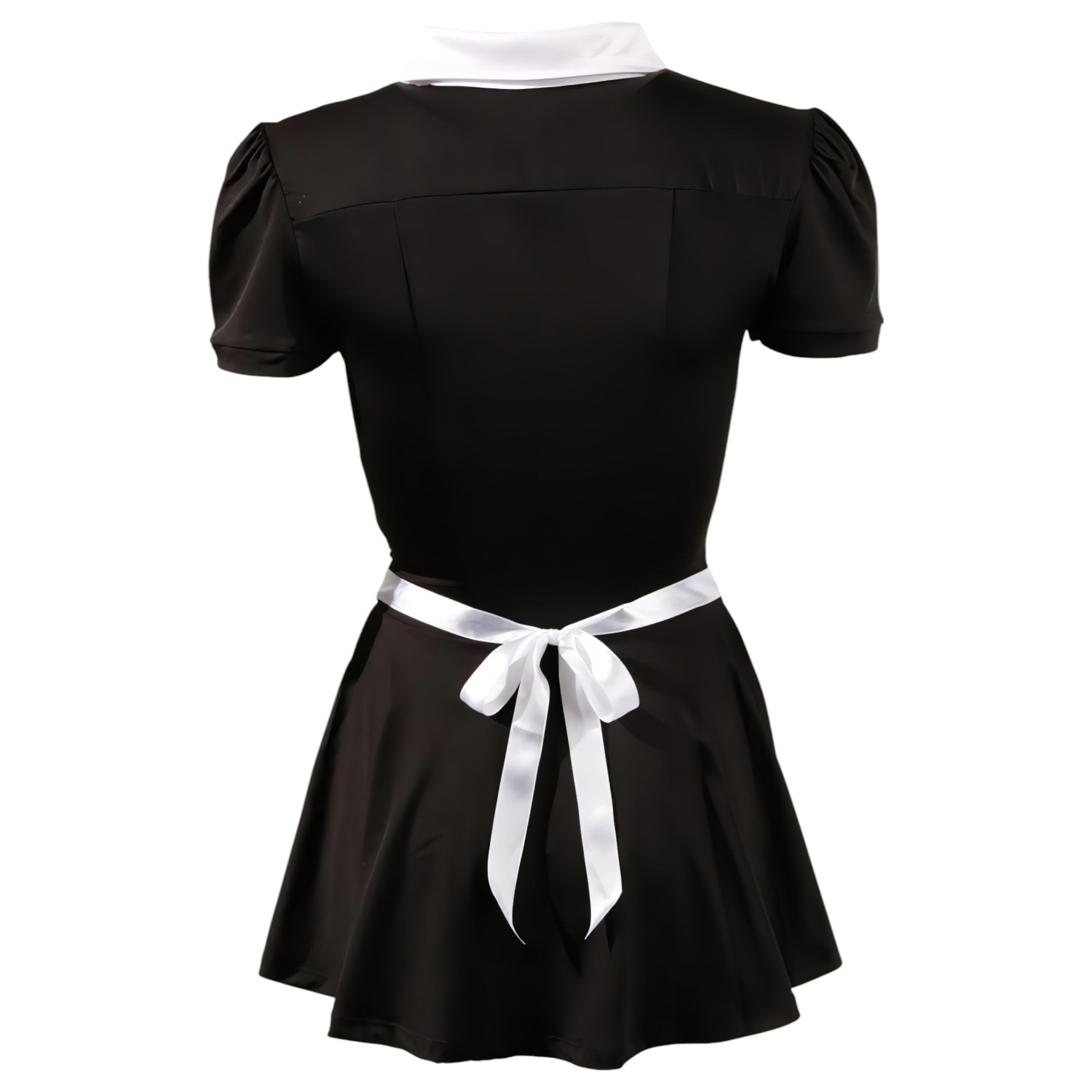 Ta urocza czarna mini sukienka inspirowana jest stylem pokojówki - idealna propozycja na seksowny i figlarny look.