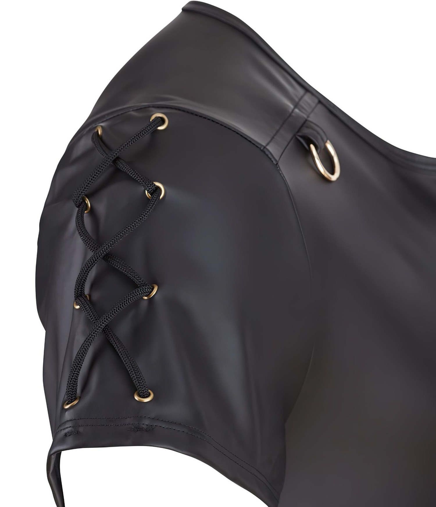 • Pikantne szczegóły: Metalowe D-ring w kolorze różowego złota, zamek i wiązania na ramionach przyciągają wzrok.